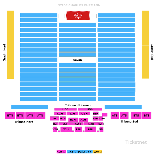 Tarifs : Cat. 1 : 166.50 € / Cat. 3 : 34.50 € / Pelouses : 87.50 €.
